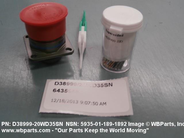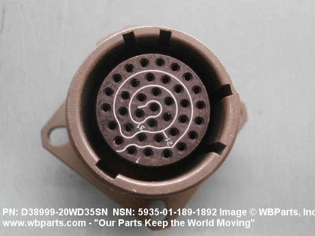 Part Alternates: SV808936 ITEM 15, SV808936ITEM15, D38999/20W1535SN, D38999/20WD35SN, D3899920W1535SN, D3899920WD35SN, MIL-C-38999/20, MILC3899920, MIL-DTL-38999/20, MILDTL3899920, 7916329-00, 5935-01-189-1892, 01-189-1892, 5935011891892, 791632900, 011891892