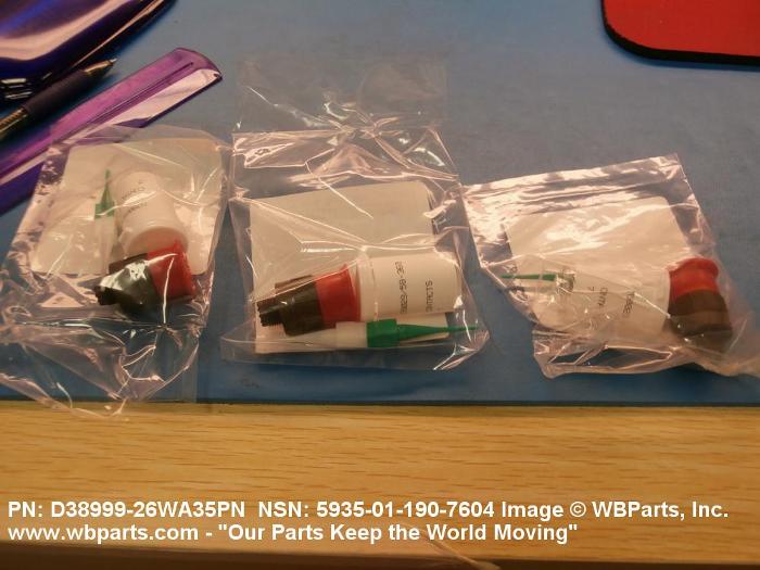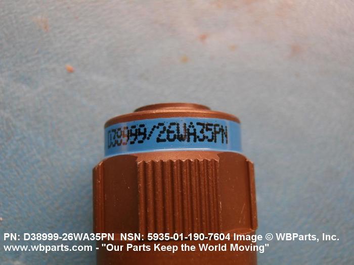 Part Alternates: ND16072T, D38999/26WA35PN, D3899926WA35PN, DOD-C-38999/26, DODC3899926, FE1000051001N, FE100-0051-001N, FE1000051062N, FE100-0051-062N, FV 2050536 ITEM 1, FV2050536ITEM1, MIL-DTL-38999/26 , MILDTL3899926, 5935-01-190-7604, 01-190-7604, 5935011907604, 011907604