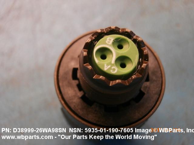 Part Alternates: AJ4132303090G, AJ413-2-303-090G, ND14748E, TV06RW0998SN, TV06RW998S, TV06RW-9-98S, D38999/26WA98SN, D3899926WA98SN, DOD-C-38999/26, DODC3899926, FE1000051004N, FE100-0051-004N, FV 2050622 ITEM 3, FV2050622ITEM3, 5935-01-190-7605, 01-190-7605, 5935011907605, 011907605