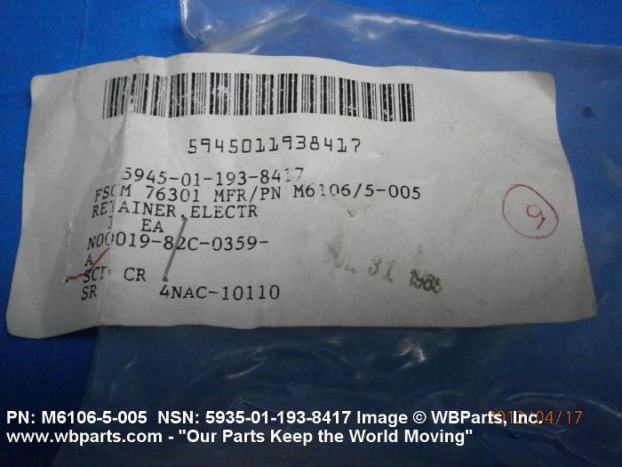 Part Alternates: M12883/51-005, M1288351005, M6106/5-005, M61065005, MIL-R-6106/5, MILR61065, MILS12883, MIL-S-12883, 10163605 , 5935-01-193-8417, 01-193-8417, 5935011938417, 011938417