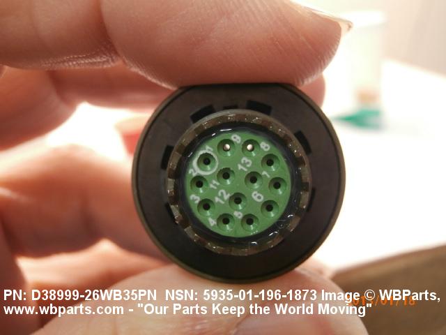 Part Alternates: D38999/26WB35PN , D3899926WB35PN, DOD-C-38999/26, DODC3899926, GHN20076323, GHN20076-323 , 10334696 , 4232007009, 4232-007-00-9, 5935-01-196-1873, 01-196-1873, 5935011961873, 011961873