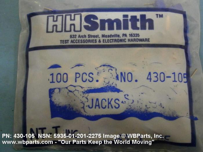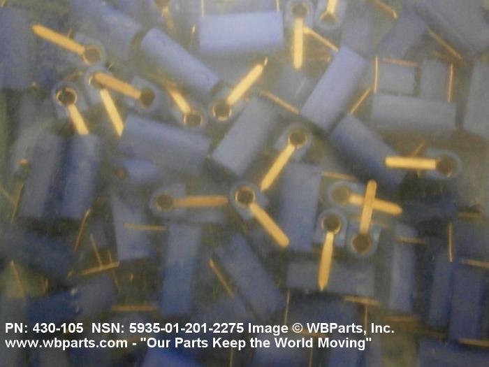 5935-01-201-2275 An electrical fitting with a female contact arranged for the insertion of a PLUG, TIP or a TIP, TEST PROD. It has a single facility for attachment of a conductor or facility for circuit connection through its mounting provisions. The item may or may not be insulated. Excludes multisection types each section of which consists of a single contact spring or telephone-type jack. Excludes CONNECTOR, RECEPTACLE ELECTRICAL; JACK, TELEPHONE; JACK ASSEMBLY, TIP; and POST, BINDING.