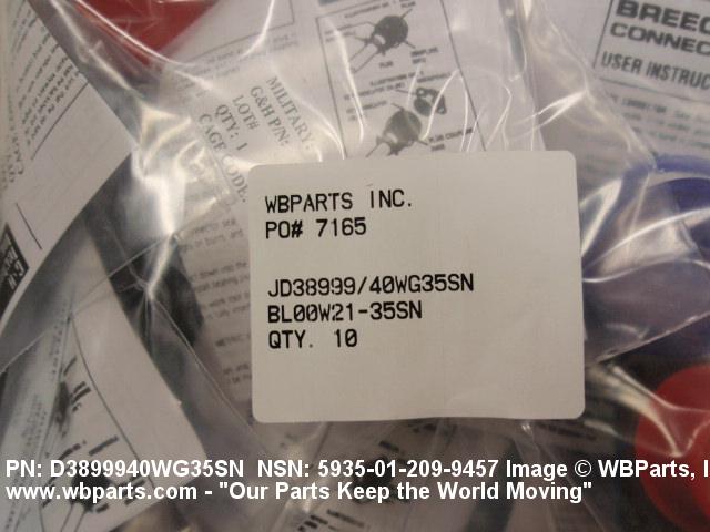 Part Alternates: D38999/40WG35SN, D3899940WG35SN, DOD-C-38999/40, DODC3899940, 5935-01-209-9457, 01-209-9457, 5935012099457, 012099457