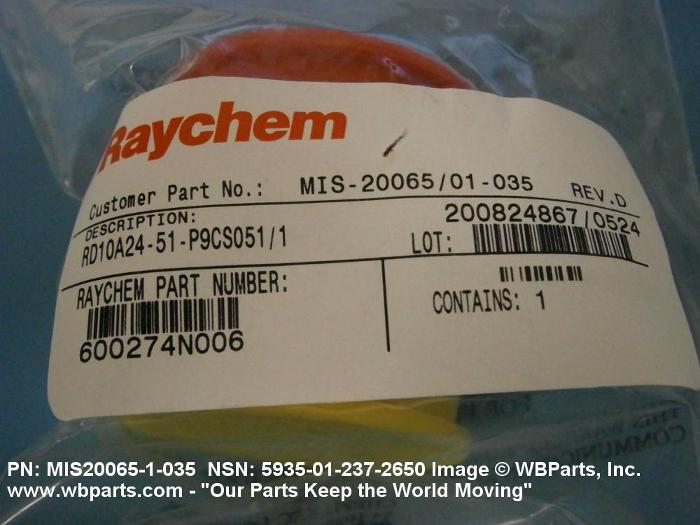 Part Alternates: MIS-20065/1-035, MIS200651035, RD10A2451P9, RD10A24-51P9, 5935-01-237-2650, 01-237-2650, 5935012372650, 012372650