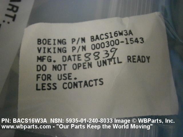 Part Alternates: BACS16W3A, 0003001543, 000300-1543, 5935-01-240-8033, 01-240-8033, 5935012408033, 012408033