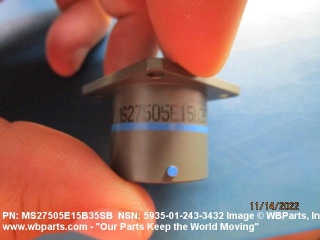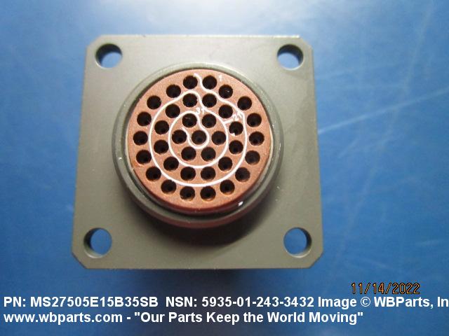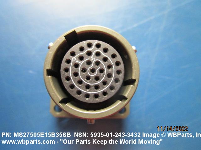 Part Alternates: MS27505E15B35SB, MILC38999, MIL-C-38999, MILDTL38999, MIL-DTL-38999, 5935-01-243-3432, 01-243-3432, 5935012433432, 012433432