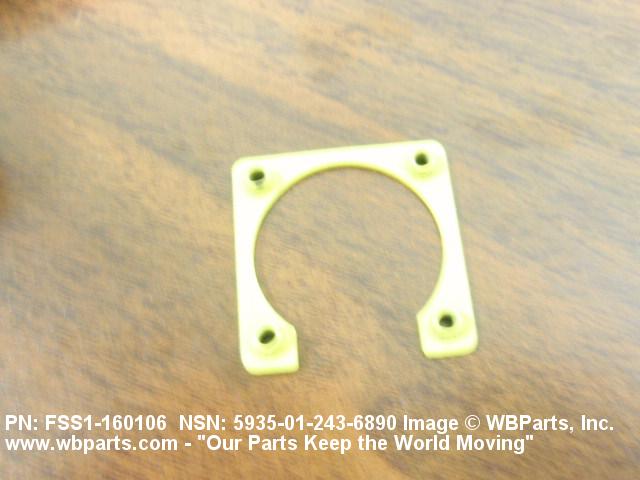 5935-01-243-6890 A flat metallic item varied in shape with an opening(s) to accommodate an electrical connector(s). It must have facilities for mounting. Used to position an electrical connector. See also PLATE, MOUNTING (as modified). Excludes PLATE, WALL, ELECTRICAL and ESCUTCHEON PLATE.