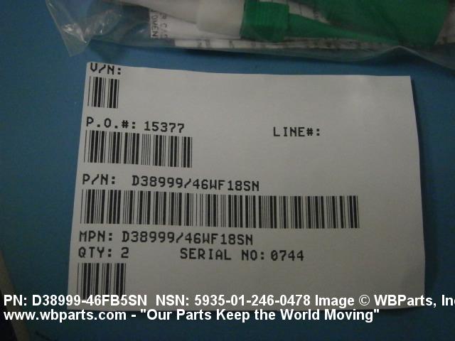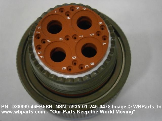 Part Alternates: D38999/46FB5SN, D3899946FB5SN, DOD-C-38999/46, DODC3899946, 0008003075, 000-8003-075, 5935-01-246-0478, 01-246-0478, 5935012460478, 012460478