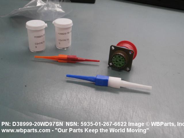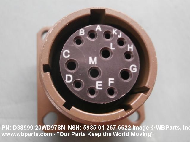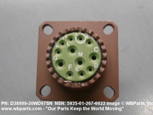Part Alternates: D38999/20WD97SN, D3899920WD97SN, DOD-C-38999/20, DODC3899920, MIL-DTL-38999/20 , MILDTL3899920, 5935-01-267-6622, 01-267-6622, 5935012676622, 012676622