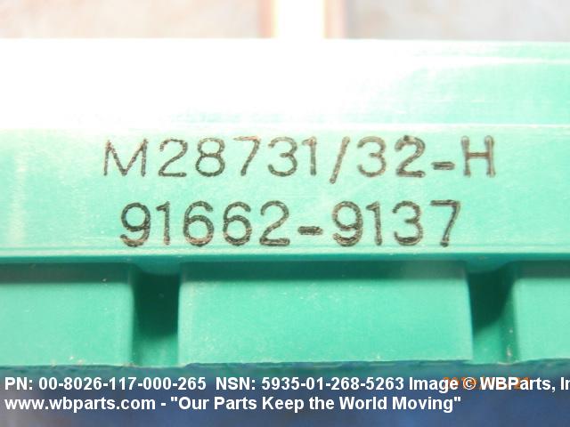 Part Alternates: M28731/32, M28731/32H, M2873132, M2873132H, 008026117000256, 008026117000265, 00-8026-117-000-265, 5935-01-268-5263, 01-268-5263, 5935012685263, 012685263