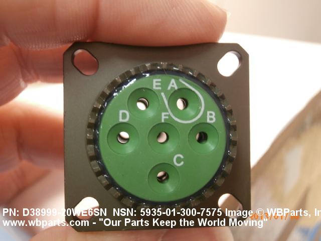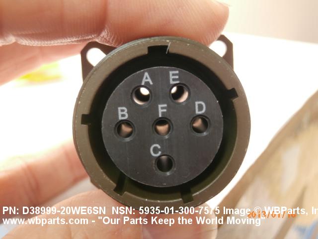 Part Alternates: D38999/20WE06SN, D3899920WE06SN, MIL-C-38999/20, MILC3899920, 5935-01-300-7575, 01-300-7575, 5935013007575, 013007575