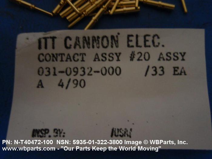 Part Alternates: NT40472100, NT40472-100, 5935-01-322-3800, 01-322-3800, 5935013223800, 013223800