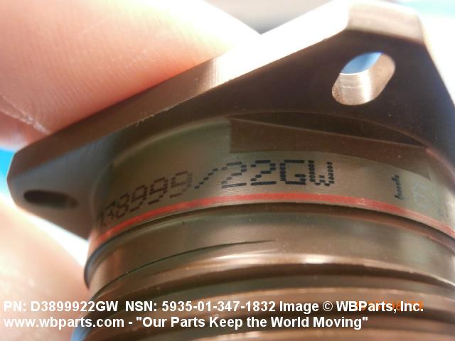 Part Alternates: D38999/22GW, D3899922GW, MIL-C-38999/22, MILC3899922, MIL-DTL-38999/22 , MILDTL3899922, 5935-01-347-1832, 01-347-1832, 5935013471832, 013471832