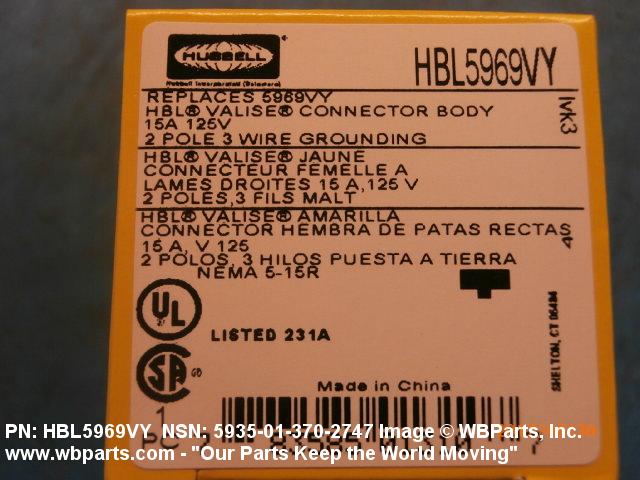Part Alternates: HBL5969VY, 5969VY, 5935-01-370-2747, 01-370-2747, 5935013702747, 013702747