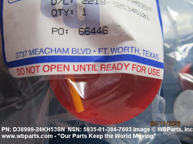 Part Alternates: D38999/24KH53SN, D3899924KH53SN, MIL-DTL-38999/24, MILDTL3899924, 5935-01-384-7603, 01-384-7603, 5935013847603, 013847603