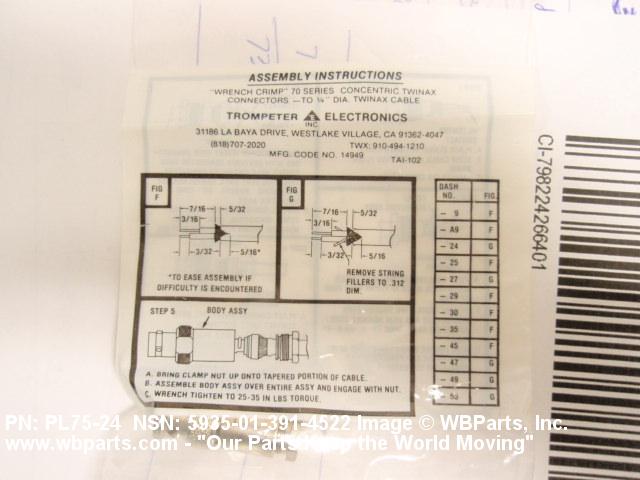NSN 5935-01-391-4522 PL7524, PL75-24, 01-391-4522