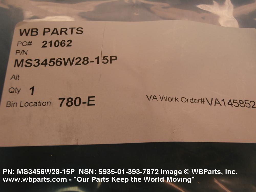 Part Alternates: MS3106A2815P, MS3106A28-15P, MS3106B2815P, MS-3106B-28-15P, MS3106R2815P, MS3106R28-15P, MS3456L2815P, MS3456L28-15P, MS3456W2815P, MS3456W28-15P, MILC5015, MIL-C-5015, 5935-01-393-7872, 01-393-7872, 5935013937872, 013937872