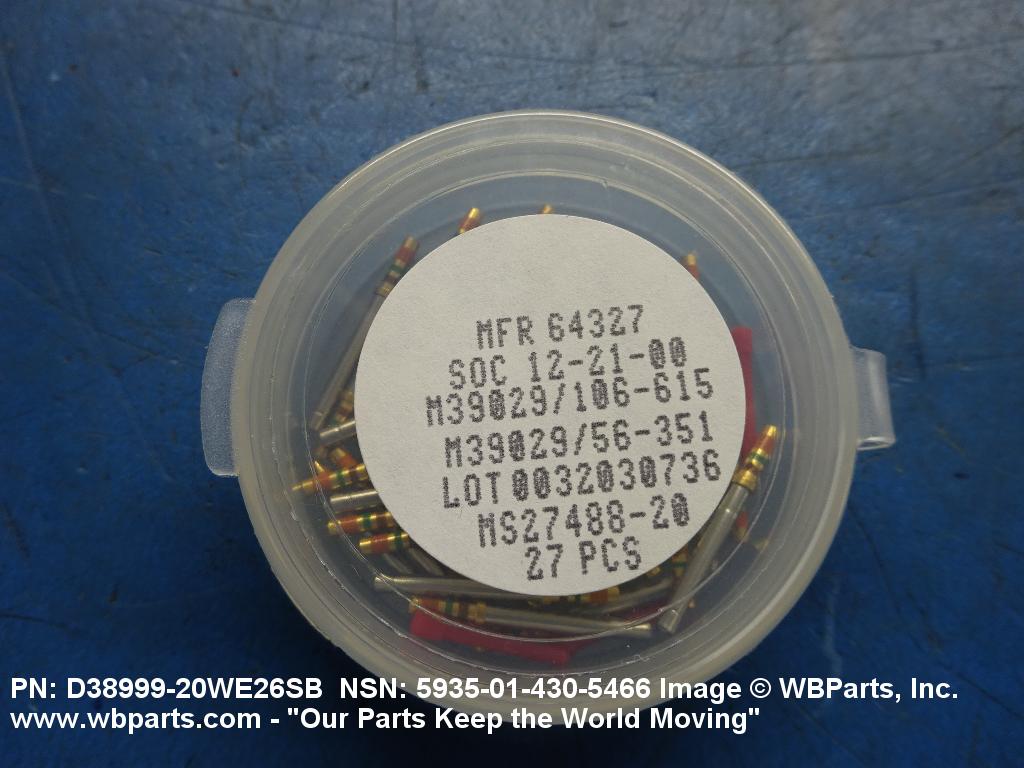 Part Alternates: D38999/20WE26SB, D3899920WE26SB, 5935-01-430-5466, 01-430-5466, 5935014305466, 014305466