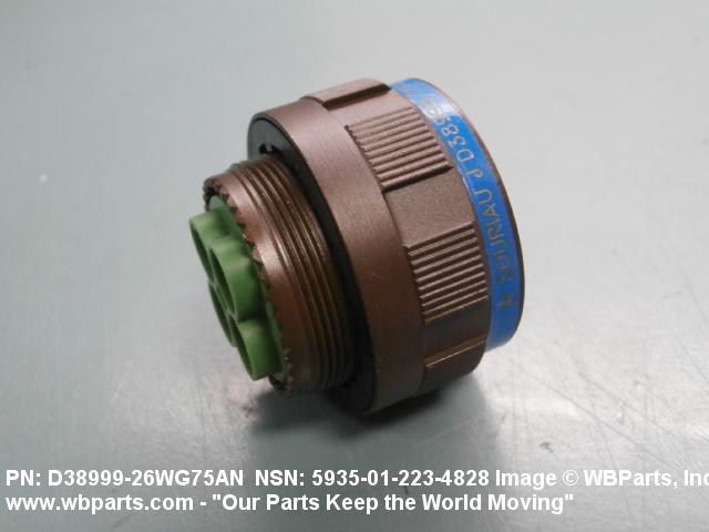 Part Alternates: D38999/26WG75AN, D3899926WG75AN, MIL-C-38999/26, MILC3899926, 5935-01-439-3021, 01-439-3021, 5935014393021, 014393021