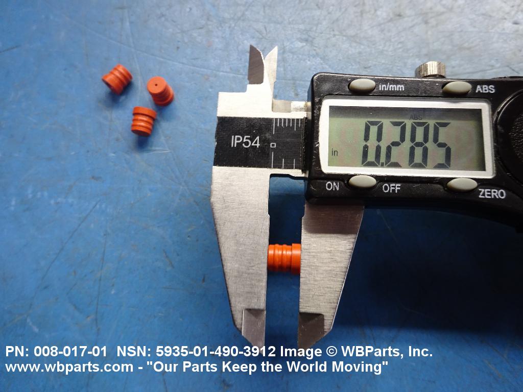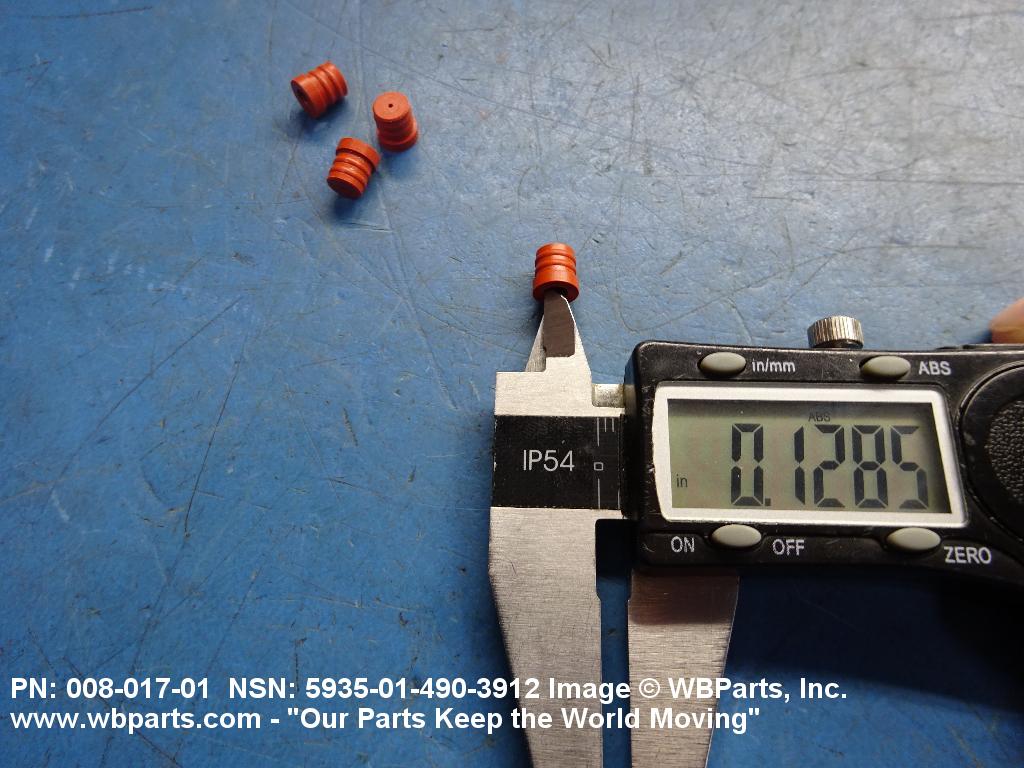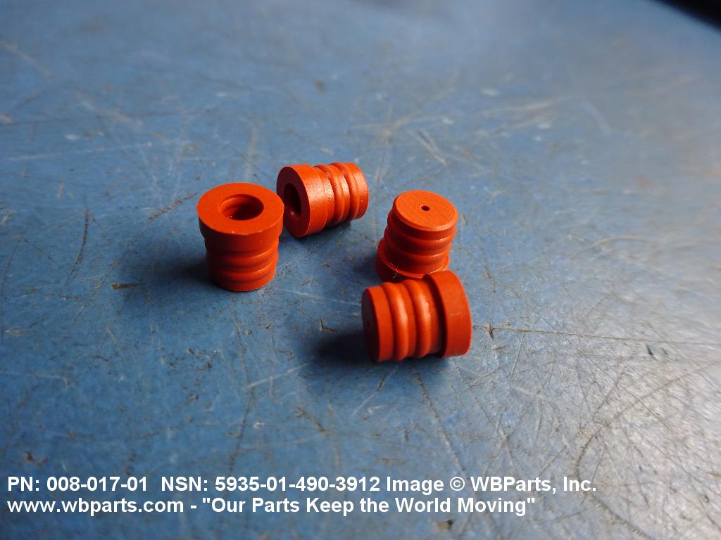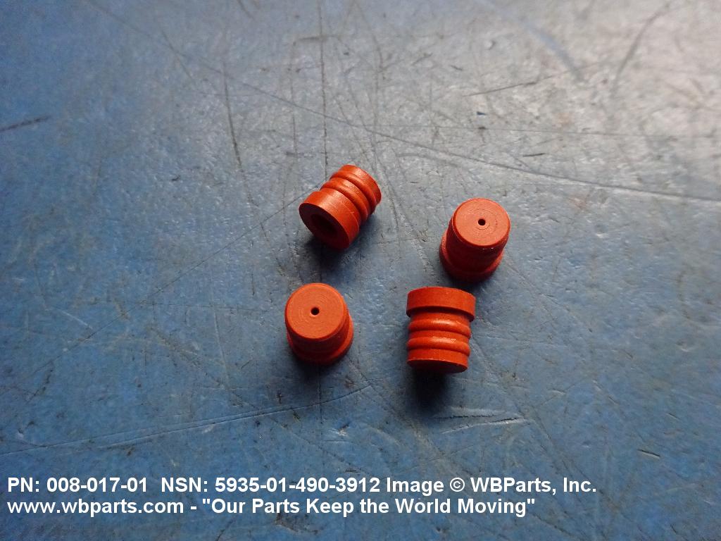 5935-01-490-3912 A small, thin, cylindrically shaped item having a straight, smooth, solid, nonmetallic body. It may have a boss on one or both ends. It is specifically designed for sealing contact holes against moisture, dust, and the like, in electrical connectors. Excludes PLUG, END SEAL, ELECTRICAL CONDUIT; and PIN, STRAIGHT, HEADLESS.