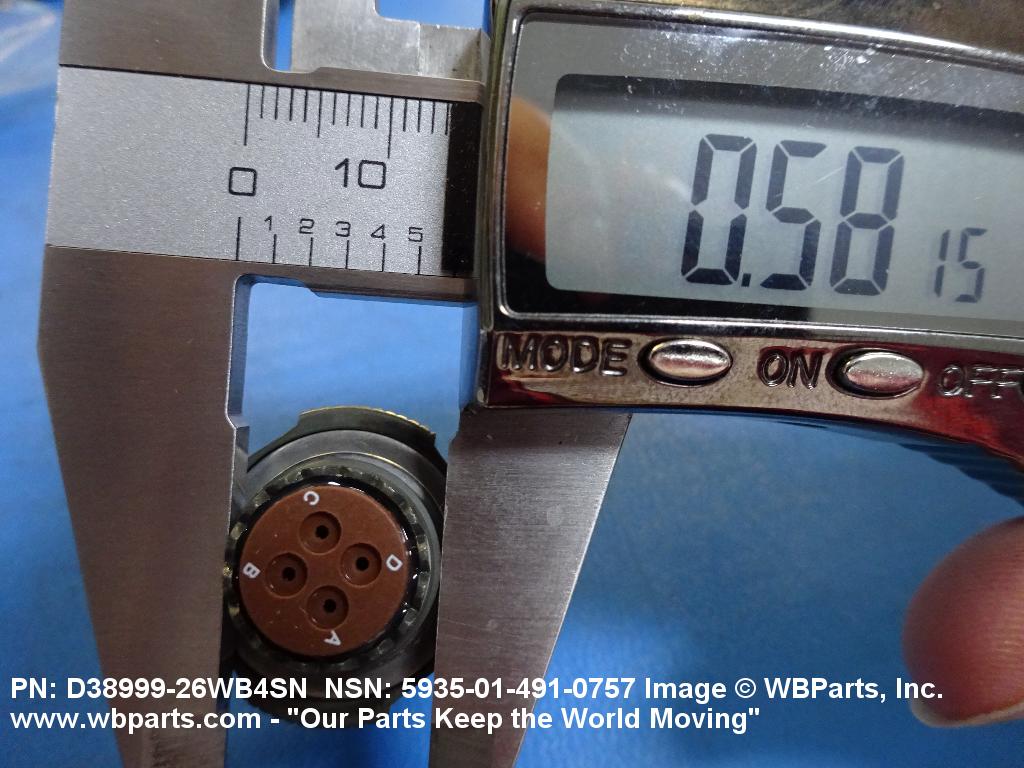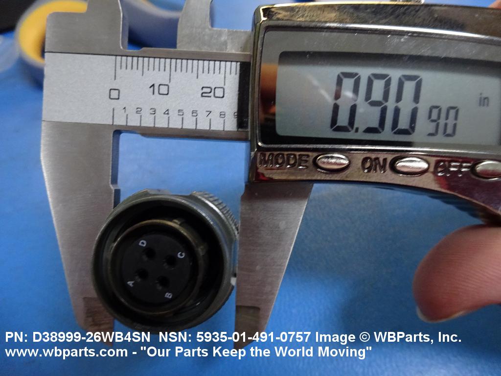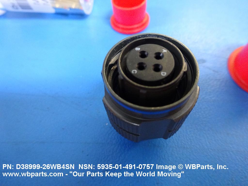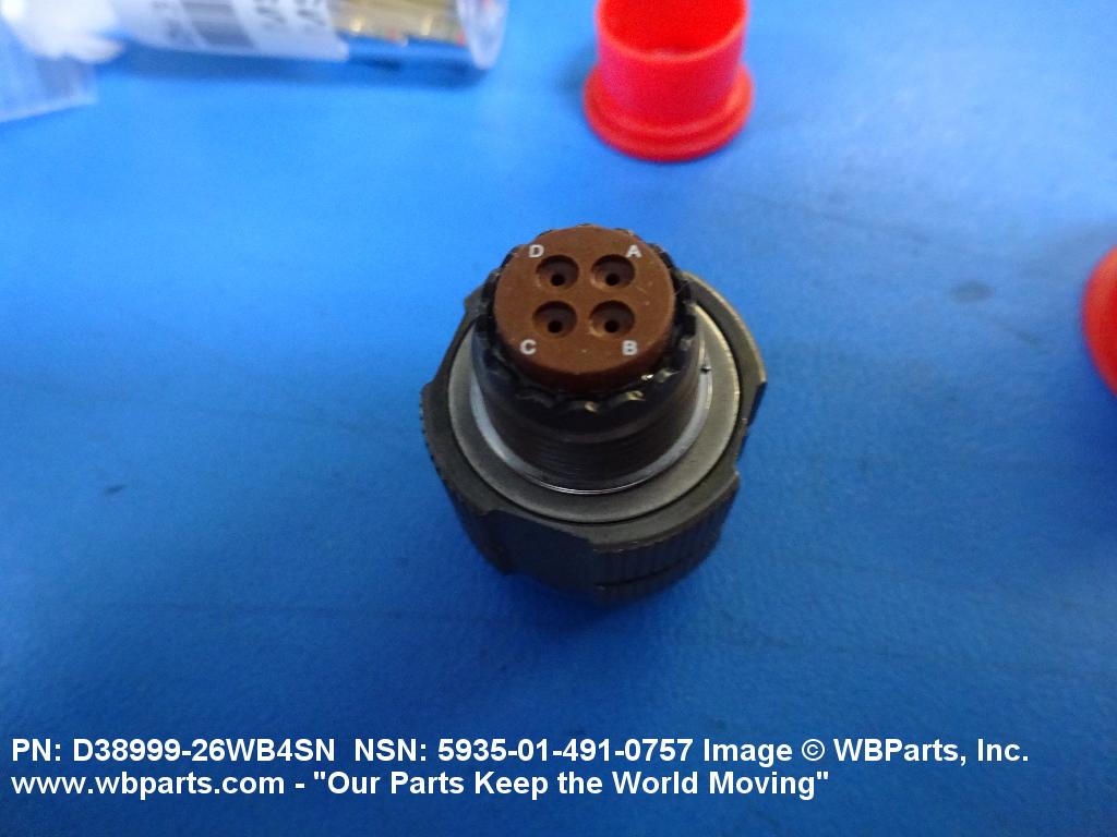 Part Alternates: D38999/26WB4SN, D3899926WB4SN, 5935-01-491-0757, 01-491-0757, 5935014910757, 014910757