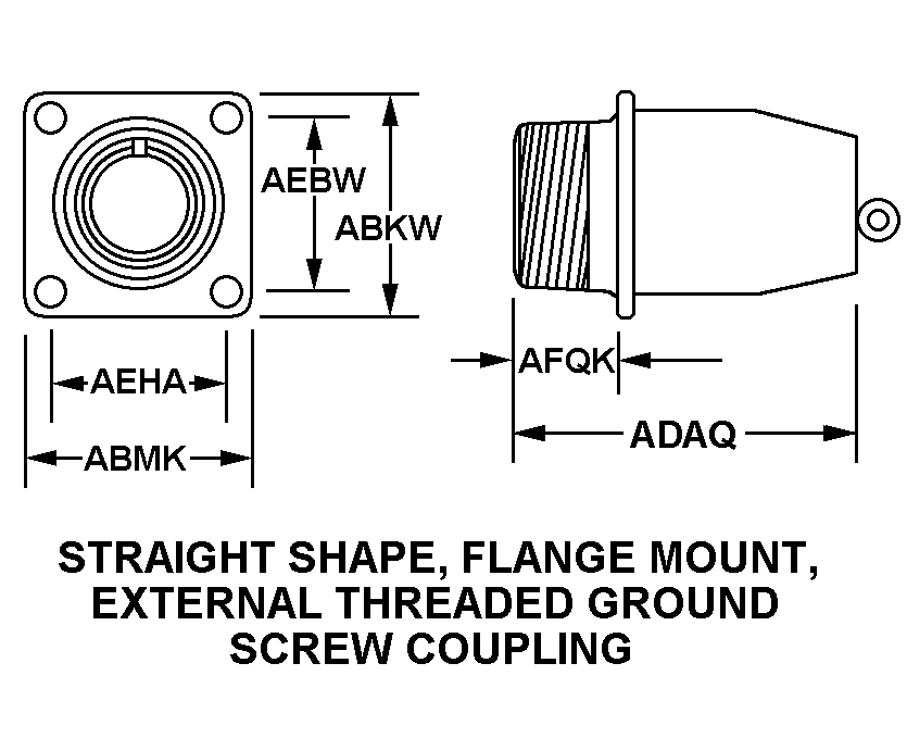 | BODY STYLE | 5H STRAIGHT SHAPE, FLANGE MOUNT, EXTERNAL THREADED GROUND SCREW COUPLING |