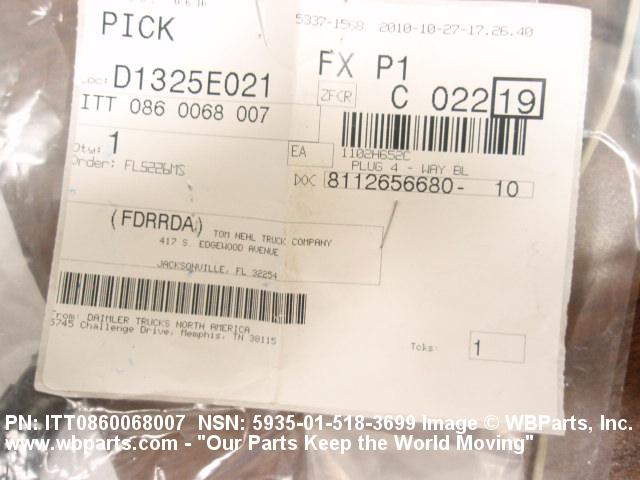Part Alternates: ITT/086 0068 007, ITT0860068007, 0860068007, 086-0068-007, 5935-01-518-3699, 01-518-3699, 5935015183699, 015183699