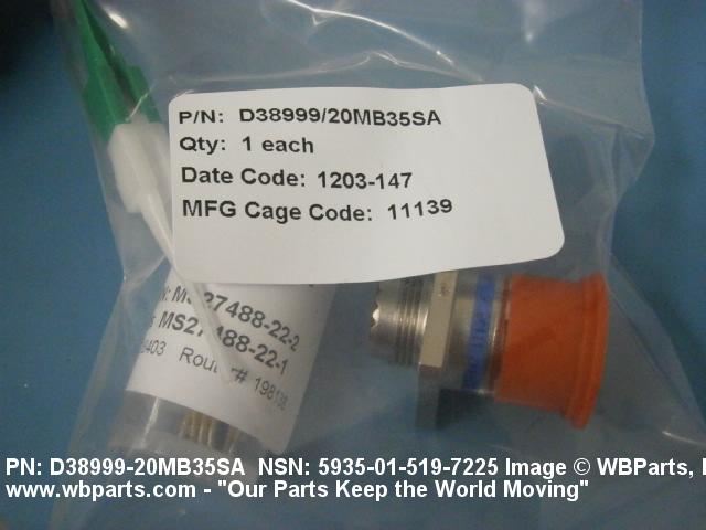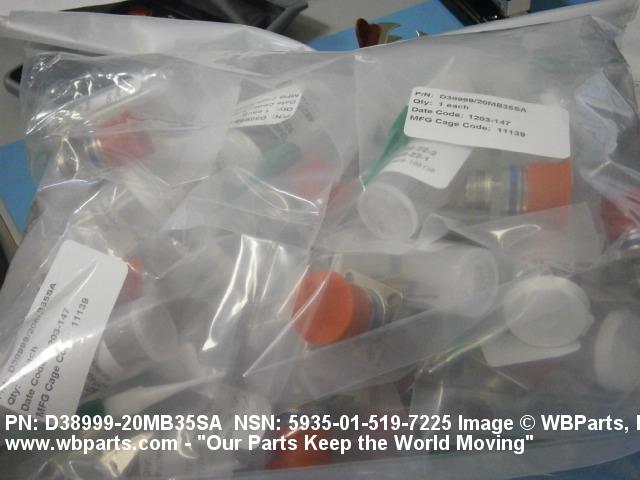 Part Alternates: D38999/20MB35SA, D3899920MB35SA, 5935-01-519-7225, 01-519-7225, 5935015197225, 015197225