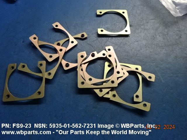 5935-01-562-7231 A flat metallic item varied in shape with an opening(s) to accommodate an electrical connector(s). It must have facilities for mounting. Used to position an electrical connector. See also PLATE, MOUNTING (as modified). Excludes PLATE, WALL, ELECTRICAL and ESCUTCHEON PLATE.