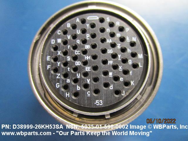 Part Alternates: D38999/26KH53SA, D3899926KH53SA, MILDTL38999, MIL-DTL-38999, 5935-01-596-0002, 01-596-0002, 5935015960002, 015960002