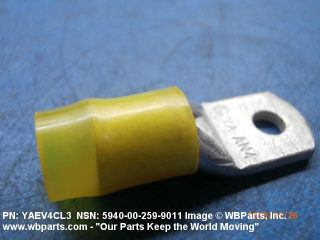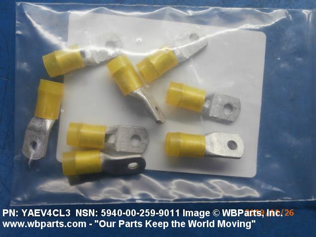 5940-00-259-9011 A terminal designed to be affixed, usually at one end, to a post, stud, chassis, or the like for mounting. It has provisions for attachment of wire(s) or similar electrical conductor(s) in order to establish an electrical connection and could require the use of tool(s) for attachment of wire. For post like terminals, see TERMINAL STUD. Excludes CLIP, ELECTRICAL; TERMINAL, QUICK DISCONNECT and TERMINAL FEEDTHRU.