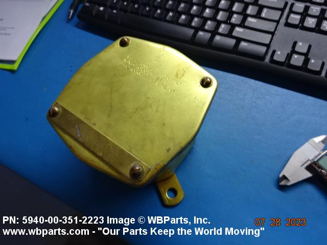 5940-00-351-2223 An enclosure which includes, mounts and protects one or more terminals and/or terminal boards. It is designed for and may include a cover and such accessories as mounting hardware, brackets, locks, and conduit fittings. For boxes which include combinations of different electrical devices such as terminals and/or terminal boards, fuseholders, switches, jacks, circuit breakers, connectors and the like, see DISTRIBUTION BOX. For boxes which are designed to mount, but which do not include terminals and/or terminal boards, see JUNCTION BOX. Excludes TERMINAL BOARD ASSEMBLY. See also CHAMBER, CABLE TERMINAL; and INTERCONNECTING CABINET.