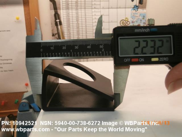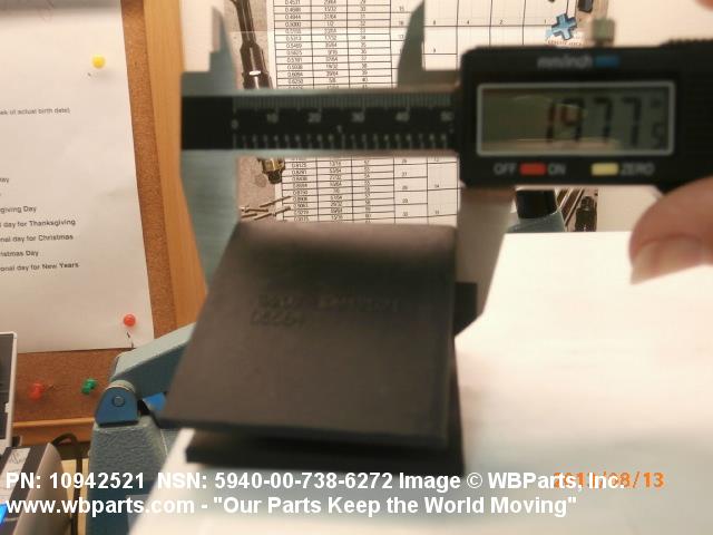 | GENERAL CHARACTERISTICS ITEM DESCRIPTION | RUBBER,MIL-R-3065,GRADE 58615A,B,C,F2,2 SIDES AND 1 END,2.000 IN. W,2.250 IN. LG,1.000 IN. H,ONE 1.250 IN. HOLE THRU ONE SIDE,HOLE CENTERED BETWEEN SIDES AND 1.250 IN. FROM OPEN END TO HOLE ENTER,0.125 IN. MATERIAL THK |