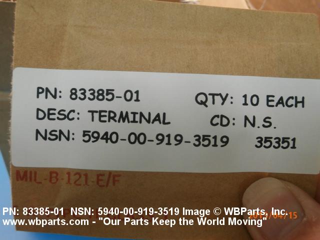 Part Alternates: 8338501, 83385-01, 5940-00-919-3519, 00-919-3519, 5940009193519, 009193519