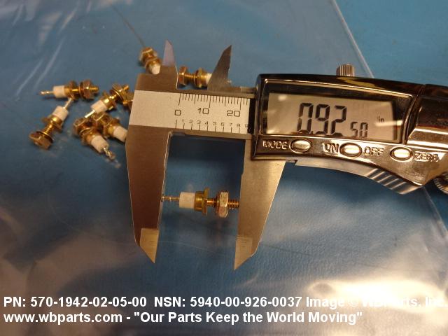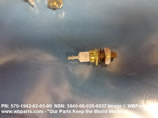 5940-00-926-0037 A terminal, generally postlike, having an axial portion of its body designed for projecting through or into a panel, or the like, for mounting. Requires the use of tool(s) for attachment of wire. The conductor connection may be insulated from the mounting. Excludes TERMINAL, FEEDTHRU. See also TERMINAL, QUICK DISCONNECT and TERMINAL SET, QUICK DISCONNECT.