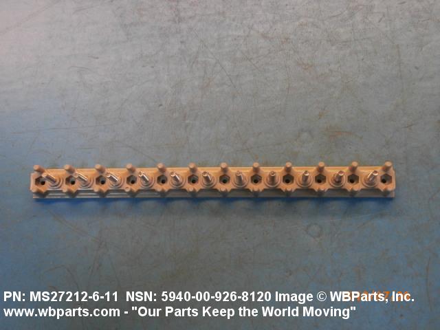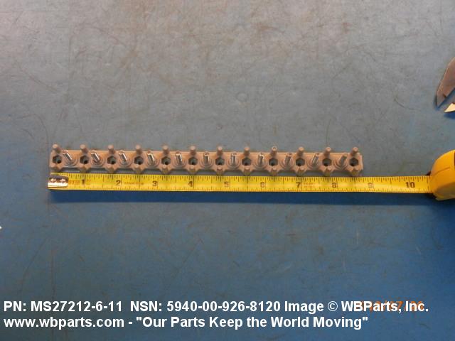 5940-00-926-8120 An item consisting of insulating material, which is specifically designed to have fastened thereon, or on which are fastened terminal(s), such as screws, solder lugs, solder studs, solderless connectors, clips, and the like. It is usually used for junctions or terminations of wire or cable assemblies. It does not include items as defined above with parts, such as resistors and capacitors mounted thereon. Do not use if a more specific name exists, such as FUSEHOLDER; HOLDER, RESISTOR; FANNING STRIP; CONTACT ASSEMBLY, ELECTRICAL; JACK ASSEMBLY, TIP; CHAMBER, CABLE TERMINAL; PANEL (2) (as modified); CONNECTOR (as modified). Excludes TERMINAL, STUD; TERMINAL, FEEDTHRU, INSULATED; POST, BINDING, ELECTRICAL; and CHASSIS, ELECTRICAL-ELECTRONIC EQUIPMENT. For items having printed electrical conductor paths, see PRINTED WIRING BOARD.