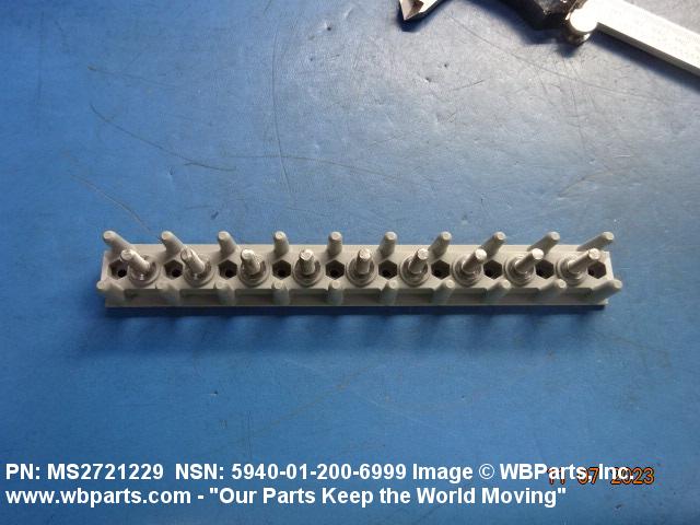 5940-01-200-6999 An item consisting of insulating material, which is specifically designed to have fastened thereon, or on which are fastened terminal(s), such as screws, solder lugs, solder studs, solderless connectors, clips, and the like. It is usually used for junctions or terminations of wire or cable assemblies. It does not include items as defined above with parts, such as resistors and capacitors mounted thereon. Do not use if a more specific name exists, such as FUSEHOLDER; HOLDER, RESISTOR; FANNING STRIP; CONTACT ASSEMBLY, ELECTRICAL; JACK ASSEMBLY, TIP; CHAMBER, CABLE TERMINAL; PANEL (2) (as modified); CONNECTOR (as modified). Excludes TERMINAL, STUD; TERMINAL, FEEDTHRU, INSULATED; POST, BINDING, ELECTRICAL; and CHASSIS, ELECTRICAL-ELECTRONIC EQUIPMENT. For items having printed electrical conductor paths, see PRINTED WIRING BOARD.