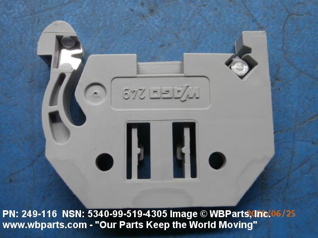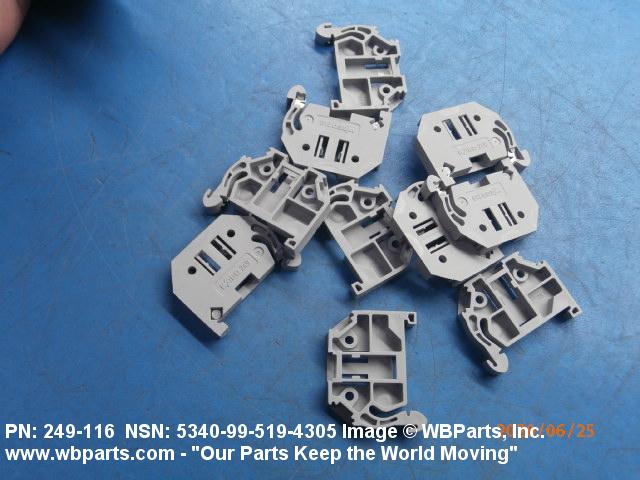 5940-01-547-8605 An electrical item with multiple socket contacts which may or may not be interconnected by bussing, to form one or more circuits. Item may be of feedback, feedthrough and/or terminating design and may afford a convenient method of interconnection. It may or may not include a sealing grommet. Sectional blocks are normally retained in a track or channel mounting. Excludes CHAMBER, CABLE TERMINAL; CONTACT ASSEMBLY, ELECTRICAL; INSERT, ELECTRICAL CONNECTOR; JUNTION BOX ; TERMINAL BOARD; and TERMINAL BOX.