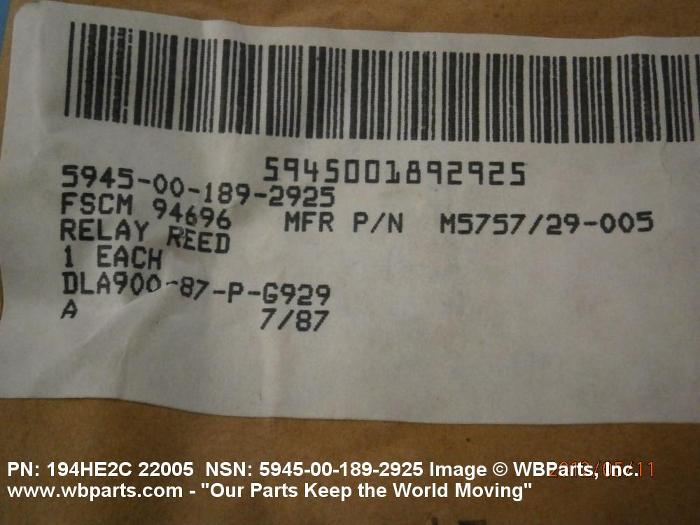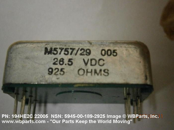 Part Alternates: M5757/29-005, M575729005, MIL-R-5757/29, MILR575729, 194HE2C22005, 339295-005, 5945-00-189-2925, 00-189-2925, 5945001892925, 001892925, 339295005