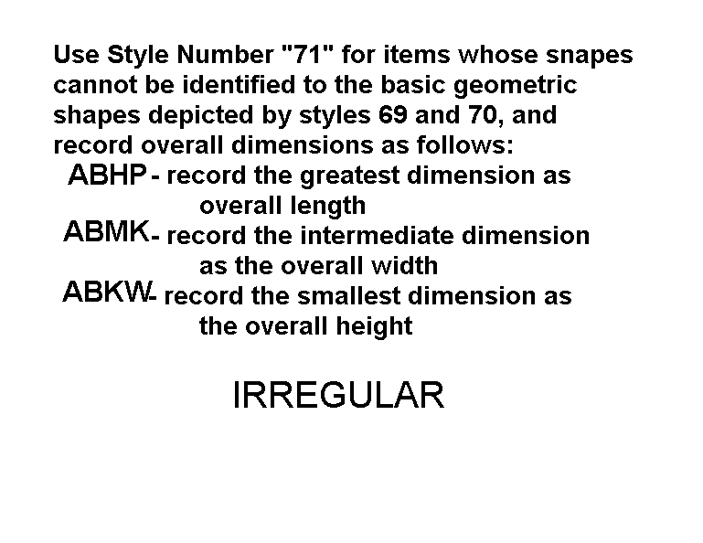 | Air Dimension Code | A | Shipment is not a consolidation and does not exceed 72 inches in any dimension. |