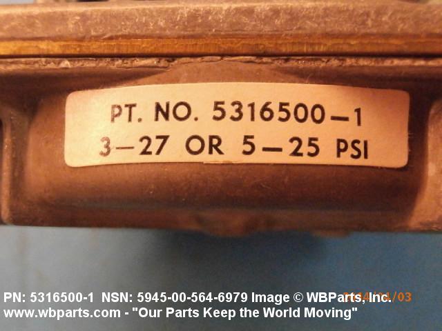 Part Alternates: 53165001, 5316500-1, 5316500A1, 5945-00-564-6979, 00-564-6979, 5945005646979, 005646979