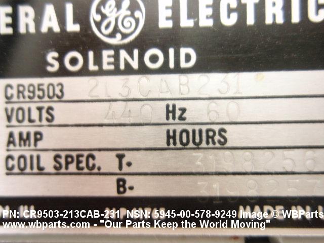 NSN 5945-00-578-9249 CR9503213A440V60HZ, CR9503-213A440V60HZ, CR9503213CAB231