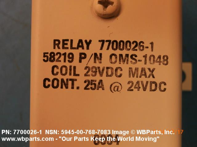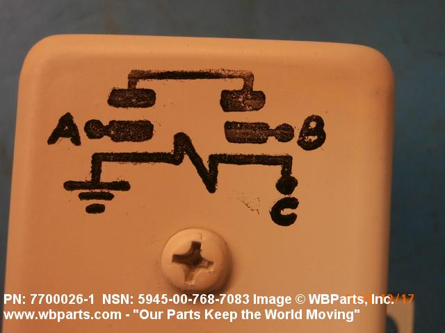 Part Alternates: MB1710, MB-1710, 14500, 7700026, 77000261, 7700026-1, 5945-00-768-7083, 00-768-7083, 1005007687083 , 5945007687083, 007687083