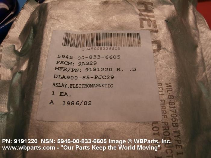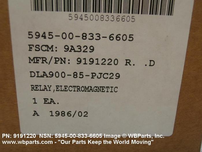 Part Alternates: B330JA22, B330JA-22, X1352, 9191220, 5945-00-833-6605, 00-833-6605, 5945008336605, 008336605