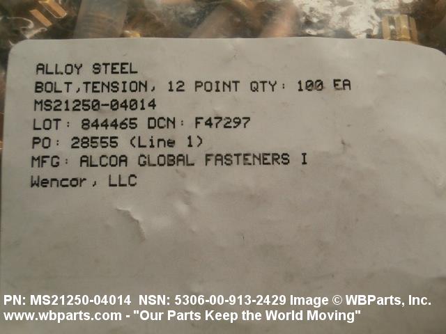 Part Alternates: MS2125004014, MS21250-04014 , MS21250-04-014 , MBT50414, MBT50-4-14 , NASM2125004014, NASM21250-04014 , VFK100G04014, VFK100G-04014 , 9A03520, 9A035-20, 2125004014, 21250-04014 , 5945-00-913-2483, 00-913-2483, 5945009132483, 009132483