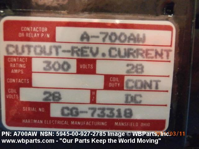 Part Alternates: A700AW, A-700AW, A700J1, 5945-00-927-2785, 00-927-2785, 5945009272785, 009272785