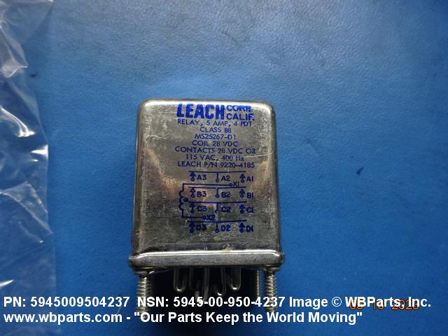 5945-00-950-4237 A relay which is actuated by the effect of a magnetic field developed by the current in its energizing coil(s). Includes solenoid and armature types. Excludes CONTACTOR, MAGNETIC; RELAY, METER MOVEMENT; RELAY, MOTOR DRIVEN; RELAY, REED; RELAY, RESONANT REED; RELAY, ROTARY; and SWITCH, STEPPING.