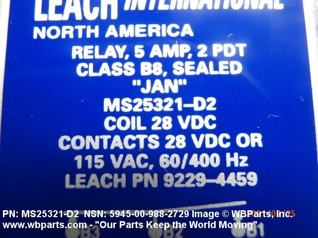 NSN 5945-00-988-2729 MS25321D2, MS25321-D2, MILPRF6106