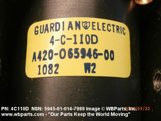 Part Alternates: A42006594600, A420-065946-00, 4C110D, 4-C-110D, 4CONT115VDC, 5945-01-014-7989, 01-014-7989, 5945010147989, 010147989