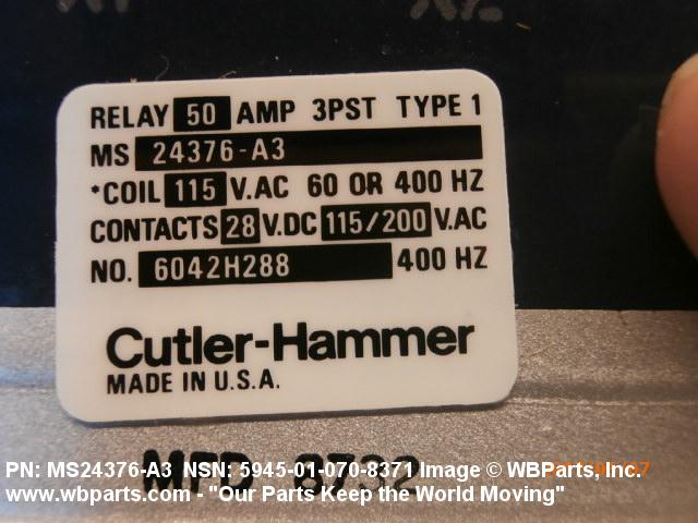 NSN 5945-01-070-8371 MS24376A3, MS24376-A3, MILPRF6106